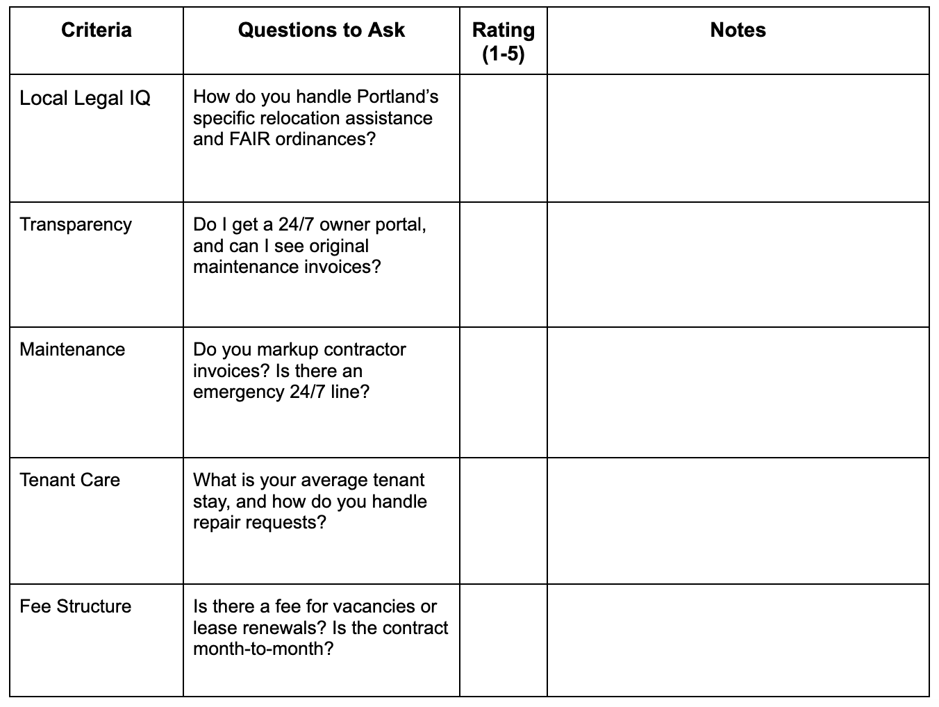 The Check: Ensure the firm has a proven track record specifically within the Portland Metro area. Ask how they stay updated on the 9.5% state rent cap for 2026 and local city ordinances.